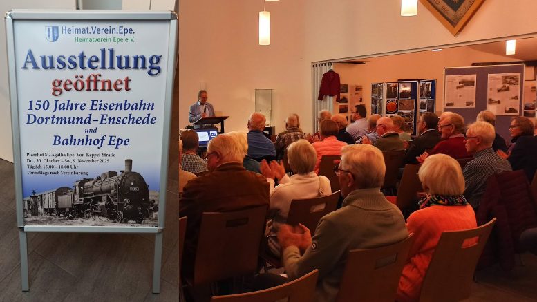 Epe – Mit einer eindrucksvollen Ausstellung und einem Festvortrag wurde am Wochenende in Epe das 150-jährige Bestehen der Eisenbahngesellschaft Dortmund–Gronau–Enschede gefeiert. Der Heimatverein Epe hatte zu dieser besonderen Veranstaltung eingeladen und zahlreiche Besucherinnen und Besucher nutzten die Gelegenheit, in die Geschichte des Bahnverkehrs der Region einzutauchen.
